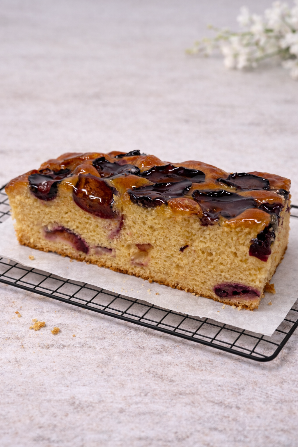 Delikatne ciasto jogurtowe z soczystymi śliwkami, lekkie i wilgotne, o przyjemnie zbalansowanym smaku. Idealne do herbaty i na chwilę słodkiej przyjemności.